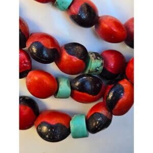 Since the times of the Inca, these amazonian seeds are worn as an amulet. The Huayruro seed is a symbol of fertility and prosperity. It attracts luck and protects against negative energies and is therefore also used in ceremonies. This necklace of beautiful big beans will become a fast favorite in any vintage jewelry collection.