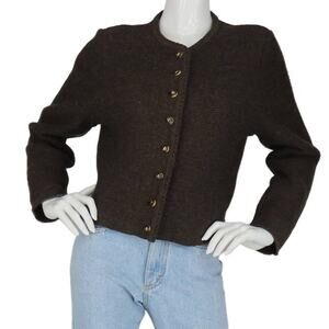 Vintage Huber Germany Chocolate Brown Hipster Boho Cardigan Wool Sweater