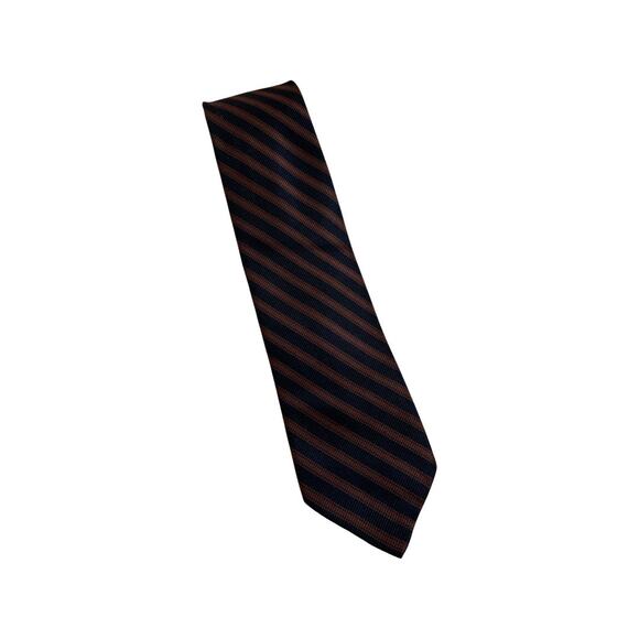 Vintage Hudson 1960s Skinny Brown Black Striped Silk Necktie