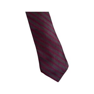 Vintage Hudson 1960s Skinny Olive Green and Maroon Striped Silk Necktie