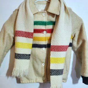 This listing is for a Used Vintage Hudson's Bay Wool Jacket with Scarf & Hood.