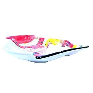 Vintage Huge Holiday Snowman Ceramic Serving Tray 16" by Cardinal Hand Painted