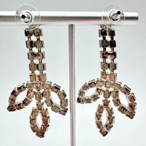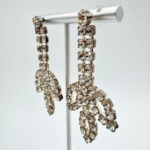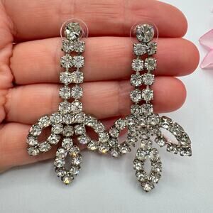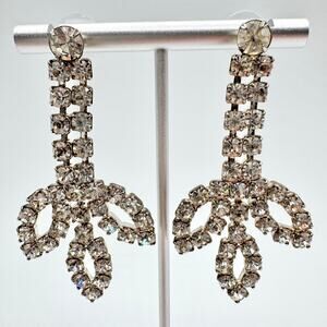 Vintage Huge Rhinestone Drop Earrings Petals Old Hollywood Regency Glam Occasion