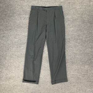 Vintage Hugo Boss Pants Mens 34 Gotham Grey Wool Pleated Front Cuffed Leg Dress
