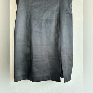 This vintage Hugo Buscati Collection mini dress is made in the USA from a satin-finish black fabric with double spaghetti straps, a structured bust, and a subtle front slit for a touch of movement. The show-stopping detail? Two embroidered and beaded dragonflies dancing across the chest—whimsical, mysterious, unforgettable.