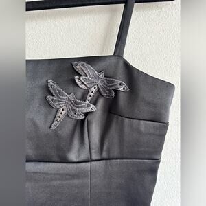 Vintage Hugo Buscati Black Mini Dress Dragonfly Appliqué | Y2K Dress Size 8