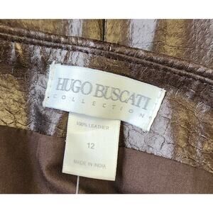 Vintage Hugo Buscati Brown Leather Skirt Size 12
