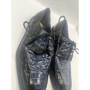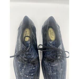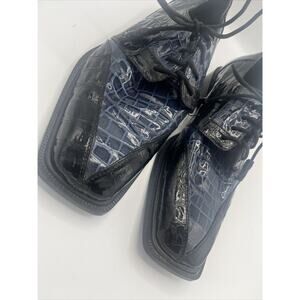 Vintage Hugo Vitelli Blue Black Crocodile Print Square Toe Loafers Sz 10.5