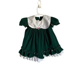 Vintage Hugs and Kisses Green Velvet Girls Dress