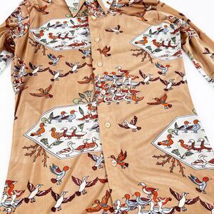 Vintage 1970's Huk-A-Poo Aztec Ducks Long Sleeve Dagger Collar Disco Shirt for Men but also perfect for women