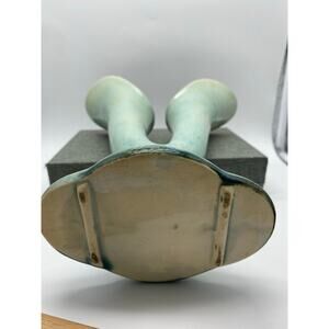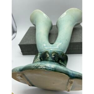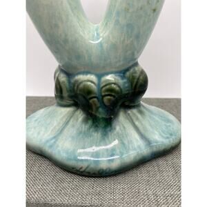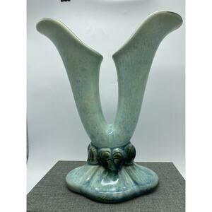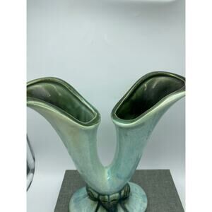 Vintage Hull Green Woodland Double Horn Bud Vase green and Blue 40s 103
