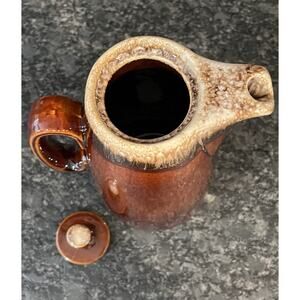 Hull Oven Proof USA Brown Drip Glaze Pitcher with Lid 11 1/4”.