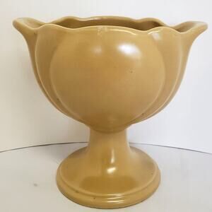 Vintage Hull Pottery Tan Tulip Vase with Pedestal Base and Glazed Finish MCM. No chips or cracks. Measurements are in the pictures. This Vintage Hull Pottery Tulip Vase showcases mid-century modern charm with its tan color, pedestal base, and glazed finish. A timeless piece, it’s perfect for collectors or as a stylish addition to retro-inspired home decor.