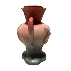 Vintage Hull Pottery USA Magnolia Vase Pink & Blue Dual Handle Floral Design 6.5