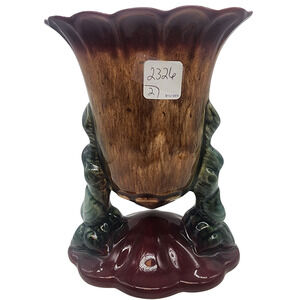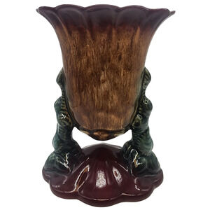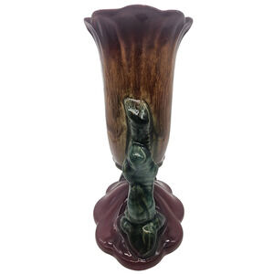 This vintage Hull Pottery vase stands at 8 inches tall and is a beautiful example of art pottery produced in the United States. Made of clay, this decorative piece showcases the craftsmanship and style characteristic of Hull's production. The original design and vintage charm make it a unique and eye-catching addition to any home decor collection.