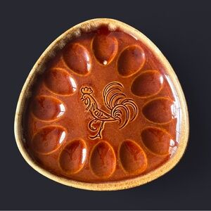 Vintage Hull pottery Brown Drip Rooster Deviled Egg Plate 1960-1985 in great condition no chips or cracks, some light wear in glaze near rooster (see images)