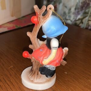 Vintage Hummel “look” girl sitting in tree Christmas tree ornament