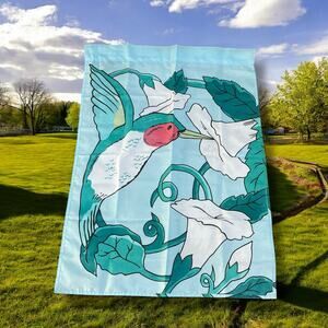 Vintage 1999 Hummingbird Flower House Garden Yard Flag Double Sided Pollinate New Creative Enterprises 29"W x 41"H