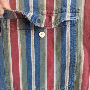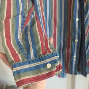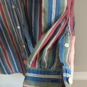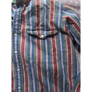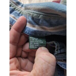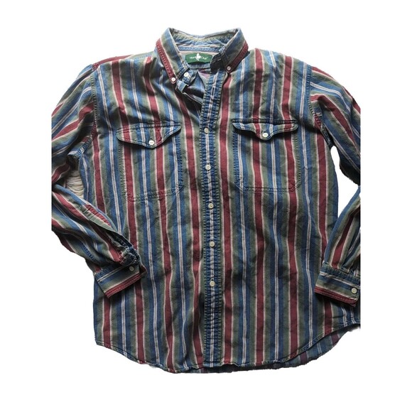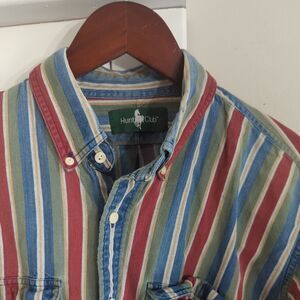 Vintage Hunt Club Shirt Mens M/L Green Red Striped Button Up Cotton Long Sleeve