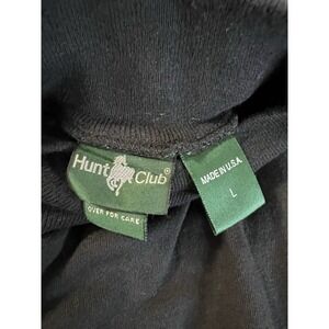 The Vintage Hunt Club Shirt in size Large is a black turtleneck for women, perfect for adding a touch of Y2K style to your wardrobe. Made by the brand Hunt Club, this classic top features a regular fit and a comfortable turtleneck design. Perfect for layering or wearing on its own, this versatile piece is a timeless addition to any outfit.