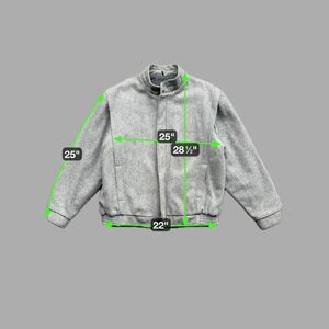 Classic vintage Hunt Club bomber-style jacket in a heavyweight gray wool-blend shell with quilted lining. Made in the USA, this piece features a structured stand collar, hidden zip + snap front, stretch ribbed hem, and clean minimalist design. Warm, durable, and built like older wool outerwearperfect for cold weather or vintage workwear fits. No major flaws found. See measurements for exact fit.