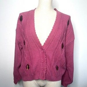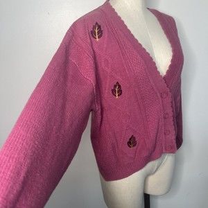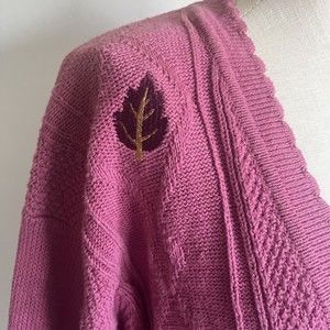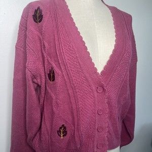Vintage Hunters Glen Sweater Fall Leaves Rose Pink Button Cardigan MP