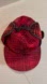 Authentic vintage red plaid hunting cap with fold-down ear flaps and an attached 1934–1935 California Resident Citizen’s Hunting License pin — a rare collectible find!