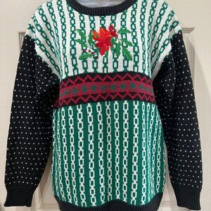 Vintage Huntington Ridge Christmas Sweater With Festive Poinsettia Design & Patt