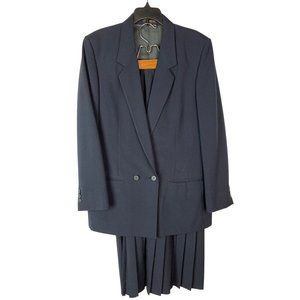 Vintage Huntington Skirt Suit Navy Blue Jacket Blazer Set