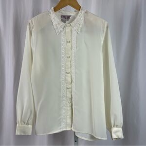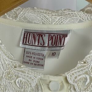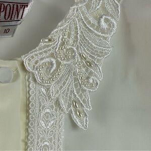 Vintage Hunts Point Size 10 Lace Beaded Collar Satin Fabric Button Blouse Cuff