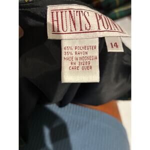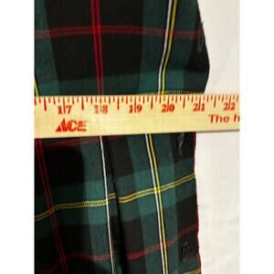 Buttons all the way down on both sides this comfortable Romper midi style dress is a retro find for comfort. This Vintage Hunts Point size 14 dress is a charming piece perfect for everyday wear. Made of cotton in the 1970s, this teacher-granny core style dress features a plaid design with side buttons. The multi-color dress has a jumperTank style with an open hip, making it suitable for academia, holiday, and Christmas looks. Made in the United States, this original piece from the Hunts Point brand is a unique addition to any vintage clothing collection.