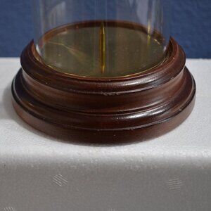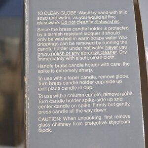 This classic vintage convertible hurricane lamp is all set to hold a pretty taper under the glass, or a pillar, standing alone, without the glass. Produced by Avon in the late 1960s, this charming piece stands 7.75 inches tall and 5 inches in diameter. The base shows off a lovely wood stain finish and is covered on the bottom with felt to protect furniture. The brass candle holder features a sharp candle spike to hold any candle sturdy and straight. The globe is constructed of fine glass and should be hand washed. This is a finely crafted hurricane, reminiscent of days gone by, but still quite perfect in today's decor. It is packed in its original styrofoam case and original box.....from a smoke free environment.