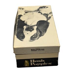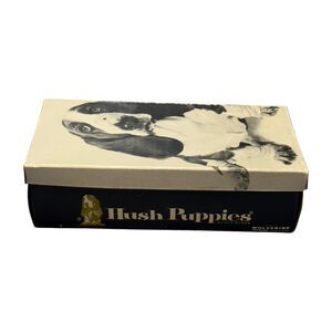 Experience a piece of history with this vintage Hush Puppies shoes box, showcasing the classic Basset Hound logo that Wolverine World Wide made iconic. The box's multi-color design highlights the heritage and playful spirit of the brand, making it an authentic collectible for any enthusiast.