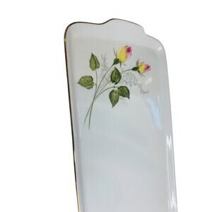 Vintage Hutschenreuther Bavaria Germany Yellow Pink Rose 12.5" Tray