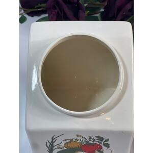Add a touch of vintage charm to your kitchen with this beautiful Hyalyn Pottery canister, dated 1995. Standing 8 inches tall, this charming canister features a delightful vegetable design that brings a touch of classic elegance to your countertop.