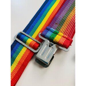 Vintage Hyde Rainbow Suspenders, 70s / 80s Rainbow Stripe Suspenders, Wide Strap Adjustable with Metal Clasps, Costume, Accessory, Pride