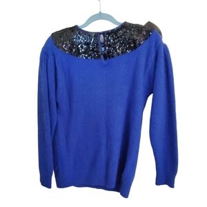 Vintage I B Diffusion Blue Silk Angora Wool Sequined Sweater Size M
