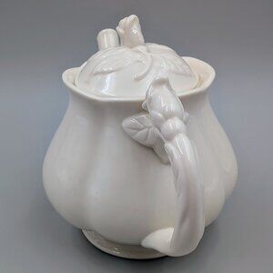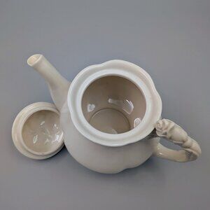 Vintage I. Godinger White Ceramic Teapot - Sculptured Rose Handle and Lid Finial