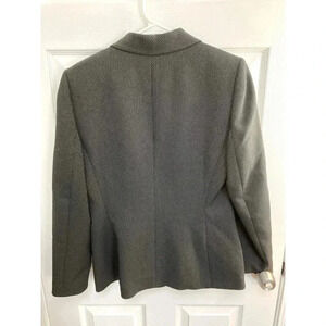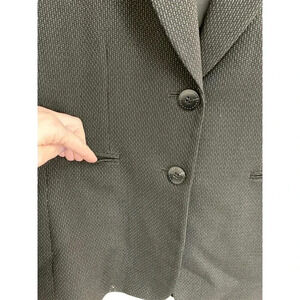 Black with white specks. Mock pockets in the front. Can be worn oversized on a smaller size with sleeves rolled or fitted on a true size 8. The darted lines and cut make for a flattering fit!
