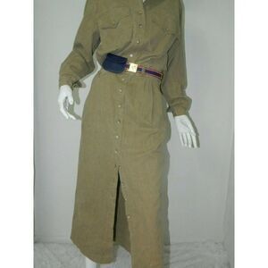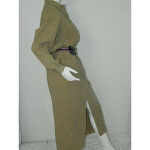Vintage I. Magnin Dress Brown Green Khaki Utility Cargo Coverall Dress Size S/M