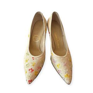 Vintage I. Miller 1950s Pointed toe pumps with Floral Embroidery.