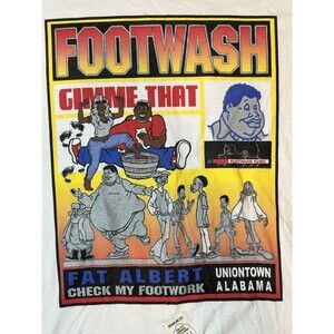 This Vintage I Survived 2005 Footwash T-Shirt is a must-have for any fan of FUBU, Fat Albert, or nostalgic 90s fashion. Made from heavyweight knit cotton, it's perfect for all seasons and features a crew neckline and short sleeves. The graphic print includes colorful coins and cartoon characters, making it a fun and playful addition to any wardrobe.