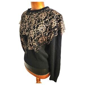 Vintage I.B. Diffusion Black Pullover Silk Blend Knit Sweater Gold Lace Beads L