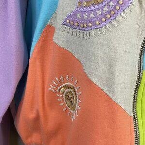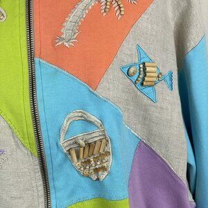 Vintage IB Diffusion Linen Bomber Jacket Large Zip 90s Cruise Vacation Hong Kong