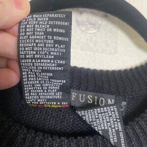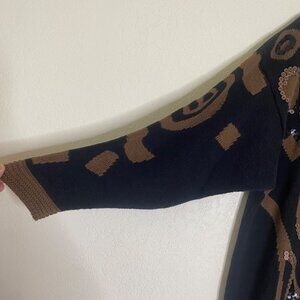 This vintage I.B. Diffusion sweater features a bold black and brown design with sequins. Made from a ramie-cotton blend, it offers a comfortable fit.