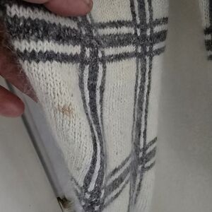 We’re an animal-loving home with cats and dogs, so please keep that in mind if you have allergies. Sweater is stored clean and away from the pets before shipping.