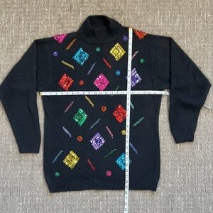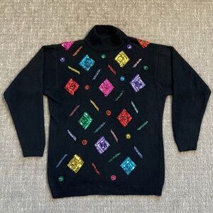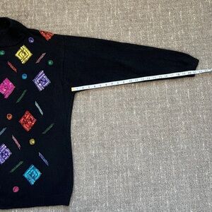 Vintage I.B. Diffusion Silk Blend Sweater Abstract Sequins Embroidery Black 90's