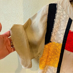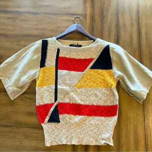 Vintage IB Diffusion Sweater Top, Medium, Colorblock, 90’s Geometric Shapes, Retro Fabric: 62% Ramie, 32% Cotton. Dry Clean. In Good Pre-Owned Condition. Approx Measurements in Pictures.