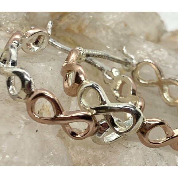 Vintage IBB Hoop Earrings Two Tone Infinity Sterling 925 Silver 0.75'' Dainty