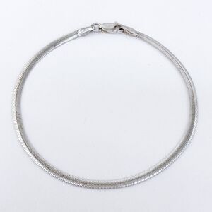 This vintage sterling silver bracelet from Romania features a sleek herringbone design, adding a touch of elegance to any outfit. Its flexible and smooth construction makes it perfect for everyday wear or layering with other pieces.